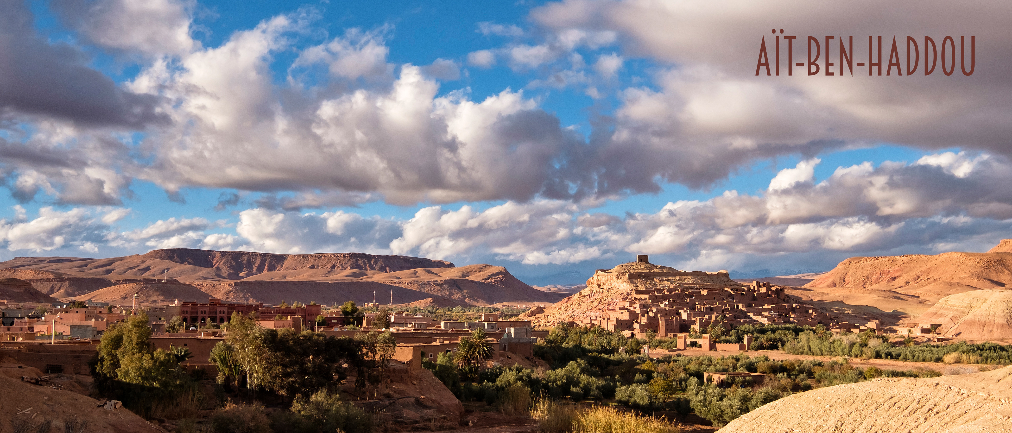 Es ist später Nachmittag. Die Sonne schickt sich bereits an, die Landschaft in sanftes Abendlicht zu tauchen und die Schatten offenbaren immer deutlicher die geschwungenen Konturen dieser pittoresken Gegend. Nach und nach erstrahlt alles in harmonischen Variationen von Rot. An der Oase Taifaste machen wir kurz Rast. Bald werden wir die Straße der 1000 Kasbahs erreichen.